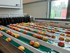 La qualité de l’ensemble du système est déterminée par la qualité de ses différentes parties. Cela s’applique en particulier aux transferts réalisés au sein du système. Eh bien, c’est justement au moment où les fruits passent à la partie suivante du système que GREEFA fait la différence. Nos systèmes équipés de tapis en V uniques en sont un très bon exemple ; ce sont eux qui ressortent délicatement les fruits de l’eau.
